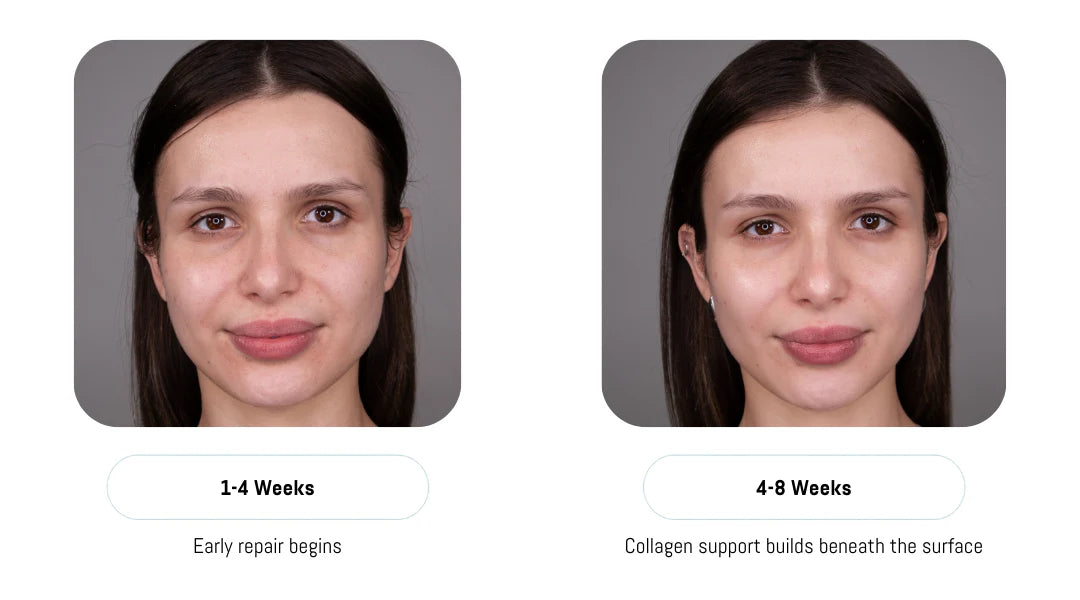 With consistent use, expect smoother texture, better hydration, firmer skin, and a gradual softening of fine lines and wrinkles. Many users also report quicker recovery from irritation or treatments like microneedling.