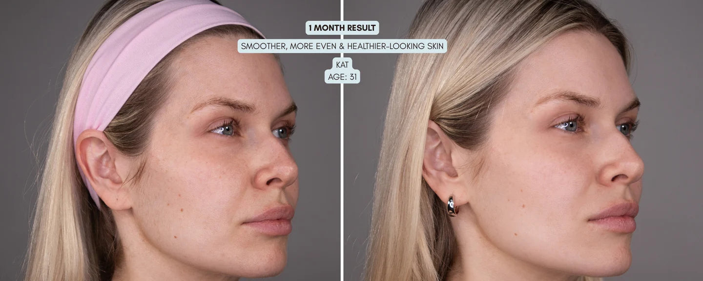"I didn’t see overnight results, but around week three I realized my skin texture had changed. It feels denser and smoother to the touch. Even without makeup, it looks more even and healthy."